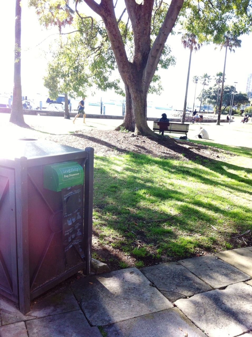 E parece que aqui todo mundo entendeu isso direitinho, a vida de todo mundo esta tão organizada, que até ao lado do lixeiro, alguém pensou num dispositivo de sacolinhas plásticas para serem usadas pelos donos de cachorros que usam o toalete por aqui.