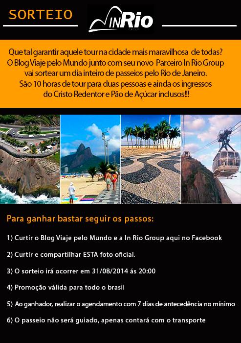 É por isso que eu sempre acho que se você não tem essa sorte de ter sua família por lá, principalmente pra fazer a viagem valer a pena, o melhor é contratar alguém que sabe o que esta fazendo. E para incentivar aqueles que ainda não conhecem o Rio o Blog vai lançar uma promoção HOJE na nossa fanpage para que você possa concorrer a um tour super especial no Rio. O Tour esta sendo oferecido pelo nosso novo parceiro In Rio Group, uma empresa em que eu confio e recomendo!!!