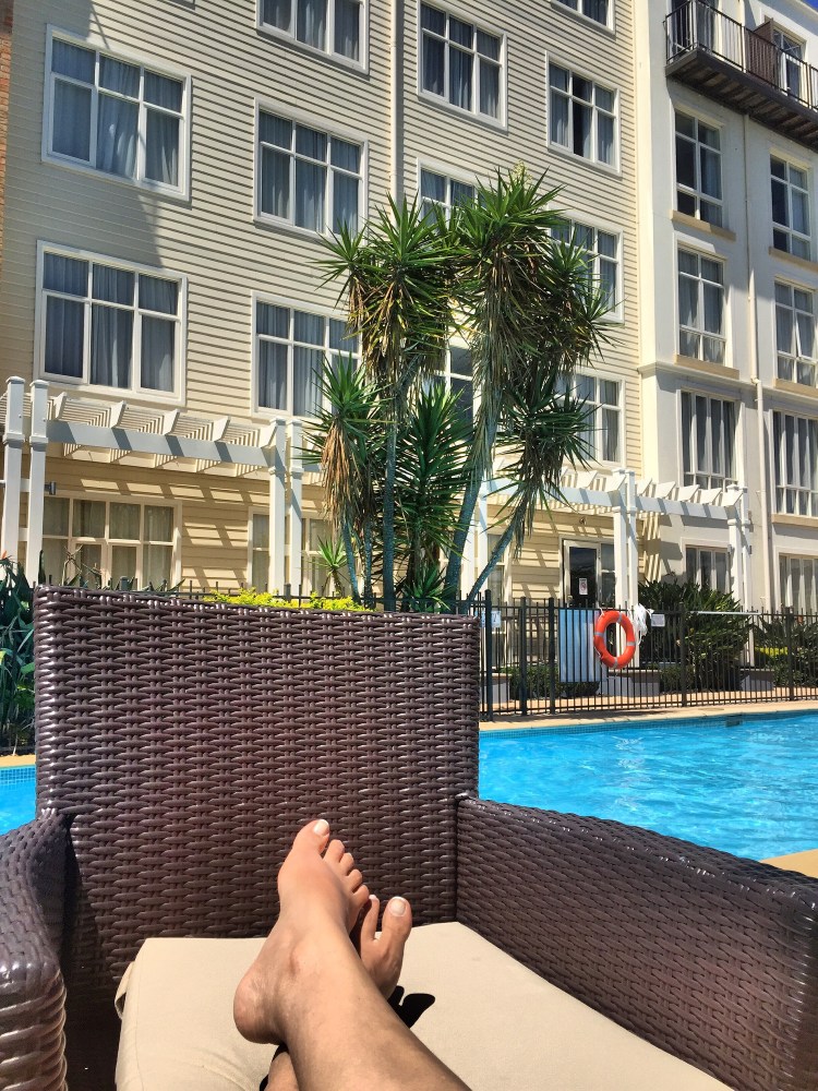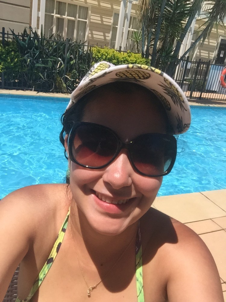 Aproveitando o “vale-sol” que ganhou do papai na última viagem pra ir pra piscina do Crowne Plaza Hotel em NewCastle enquanto ele olhava o bebê. Não precisava nem de legenda a cara de feliz (e vermelha de sol) depois de quase um ano sem ter o privilégio da vitamina D 🌞🌞🌞🙏🙊
