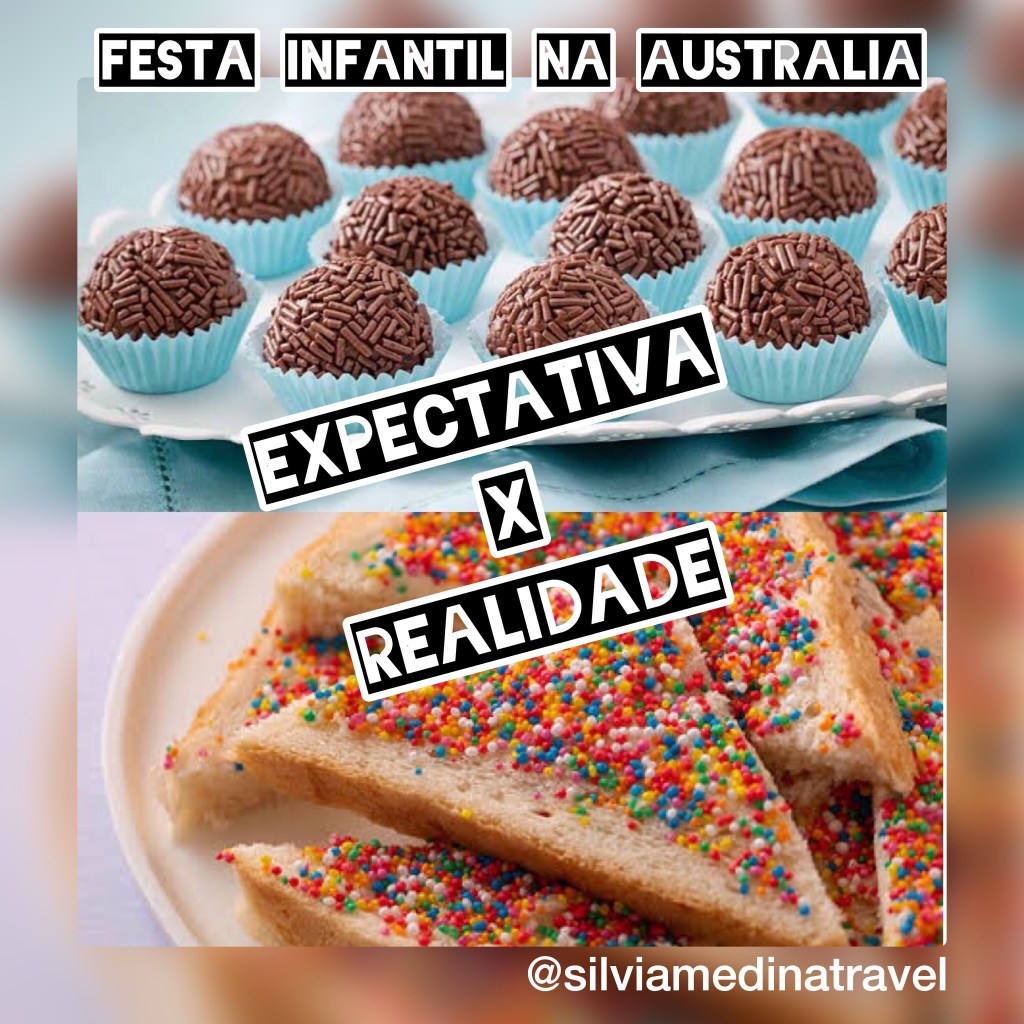 E quando somos convidados para festinha de criança, ai você imagina: Salgadinho e brigadeiro, certo? Errado! O mais próximo disso é um pão de forma (já viram que eles gostam disso né), com manteiga e granulado chamado fairy bread 😅