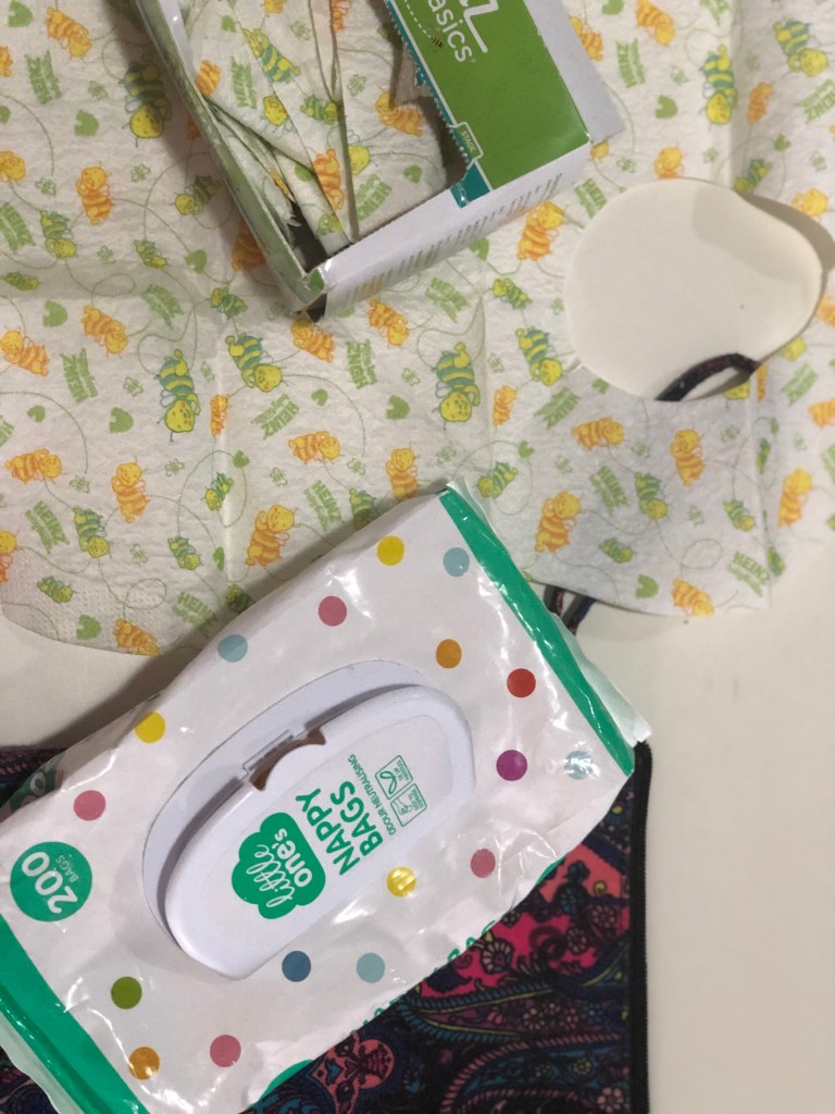 Alguns itens de uso durante viagens e passeios com bebê infelizmente precisam ser descartáveis como babador, trocador (mesmo que você tenha um portátil é bom ter esse para forrar o local), e além disso recomendo sacolinhas descartáveis para colocar o coco ou guardar roupa suja em caso de acidente ou sujeira de comida que você não vai querer que suje outras coisas.